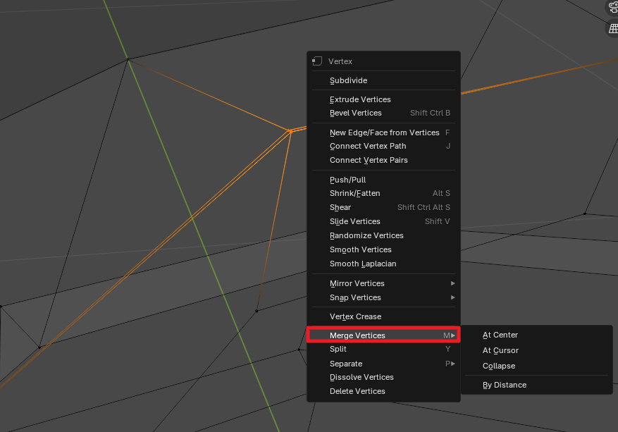 At Center : 선택된 버텍스의 중간 위치로 병합